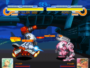 Fora isso, o jogo é basicamente o que você pode esperar de um jogo de luta da Capcom: não é um jogo de sutileza particular ou de estratégia profunda, mas sendo um jogo sobre grandes mechas batendo uns nos outros, acho que precise ser. Em vez disso, você tem grandes ataques de laser e braços caindo, cenários sendo destruídos conforme a luta rola e essa coisa. Ao que o jogo se propõe a fazer, está bom.
