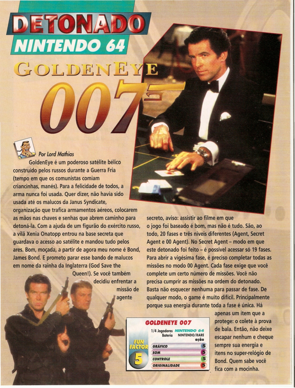 Individualmente, 007GE não faz nada que exploda sua cabeça, mas quando vc junta tudo que ele faz, aí então temos um daqueles jogos que mudou os video games para sempre. A primeira fase do jogo, por exemplo, sozinha tem furtividade, sniping, múltiplos objetivos, bem como objetivos adicionais baseados na dificuldade.