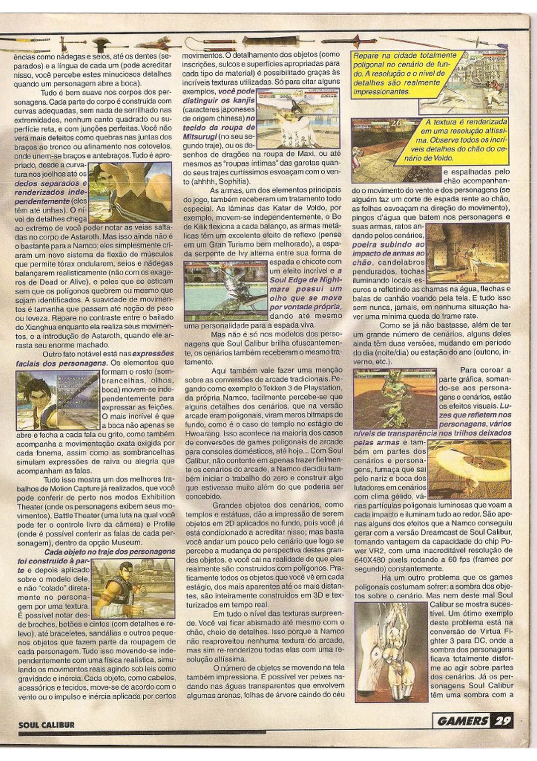 Curiosamente, mudar o jogo do jogo para a fisica mais realista ao invés de ippieee-combos, teve o resultado que Soulcalibur acaba lembrando outro jogo de luta que tem essa proposta: BUSHIDO BLADE.